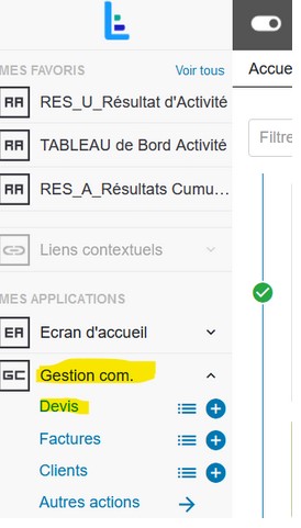 Je me connecte à Louty et je clique sur le formulaire "Gestion com" puis sur "devis" :