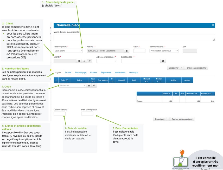 Le devis doit mentionner les éléments suivants qui sont obligatoires lors de votre saisie sur LOUTY ou directement pris en compte :