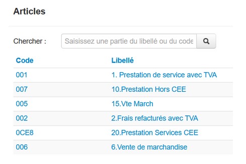 Je pense à bien personnaliser le libellé des articles (par exemple : enlever le 1. devant prestation de service et enlever avec TVA à la fin). Pour rappel, les factures doivent être validées avant le 10 de chaque mois.