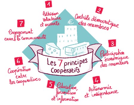 Ses valeurs sont retranscrites par la mise en œuvre de 7 principes coopératifs.